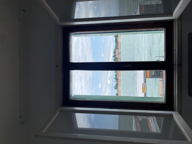 - Salotto con pavimento in seminato veneziano e vista aperta sulla laguna nord